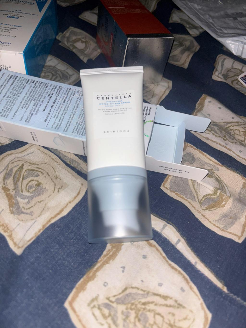 Madagascar Centella Hyalu-Cica Water-Fit Sun Serum is a sunscreen with SPF 50+ PA++++, a mix ingredients of centella asiatica and hyaluronic acid with other ingredients like arugula leaf, green tea and broccoli extracts which soothes and hydrate the skin while providing antioxidant benefits, further calming irritated skins from dryness. This sun serum leaves no white cast and completed skin irritation test and is safe for sensitive skins.